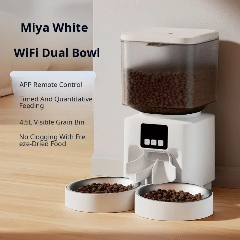 Smart Version of Double Bowl - Including 304 Food Bowl [App Remote Control + Scheduled and Quantitative Feeding + Support 5g]